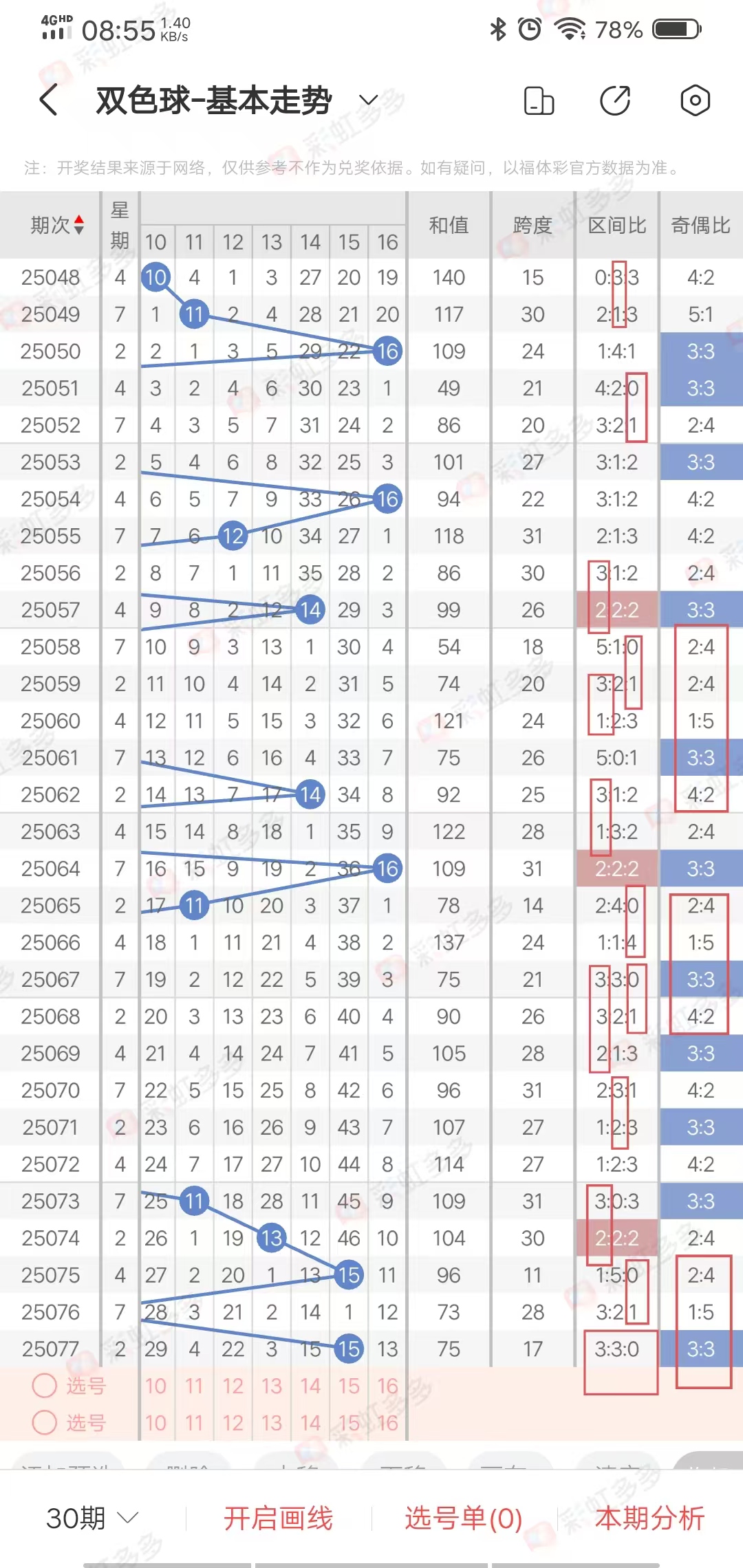 杀神双色球25078期规律走势分析-上期两码围中蓝球