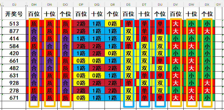 1,目前开奖号百位号码球11天当中,质数(12357)开出了3次,合数(04689)开出了8次,本期重点关注开奖号百位号码球质数的回补!