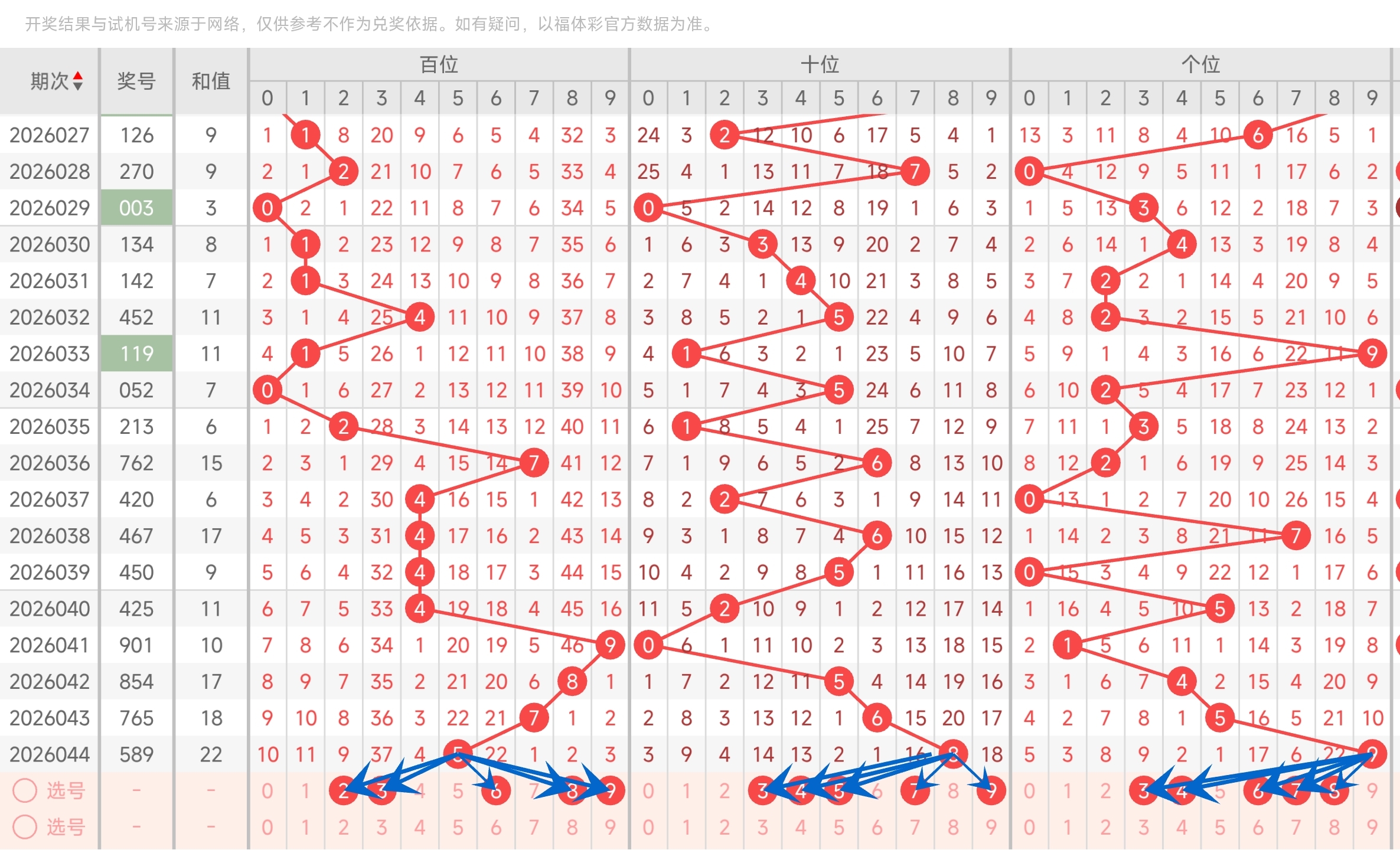 关于2026045期福彩3D分析,上期6码复式命中589,百十位胆码命中58