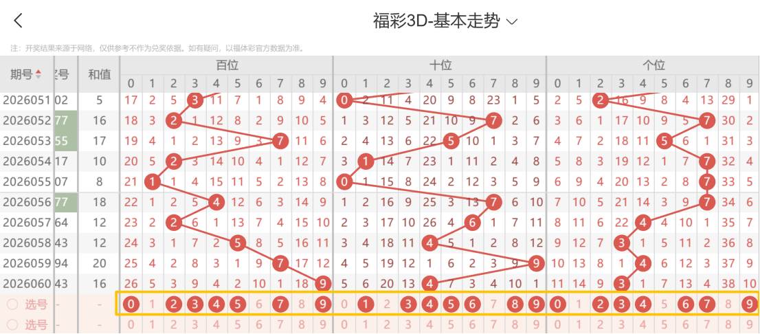 带着粉丝发大财福彩3D第26061期选号条件分析