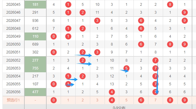 大家好,本人蔡楚门,一个玩彩十几年的老彩民,现在来本平台分享一下本人的对彩票的分析思路和看法,希望本人的文章能够给你们带来灵感和好的运气,首先感谢一起彩提供一个好的平台,下面走势图都是用一起彩平台的走势图,接下来分析一下福彩3D第2026057期号码思路。下面文章中名词解读,合数为0 4 6 8 9,质数1 2 3 5 7,奇数1 3 5 7 9,偶数0 2 4 6 8,1路球数字1 4 7,2路球数字2 5 8,,0路球数字0 3 6 9。下面分析是从左到右定位分析。