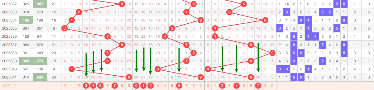 上期十位开出9,本区与上期的跨度为6,本期我们可以从上面走势图中看出选号的思路,本期十位推荐关注:012769