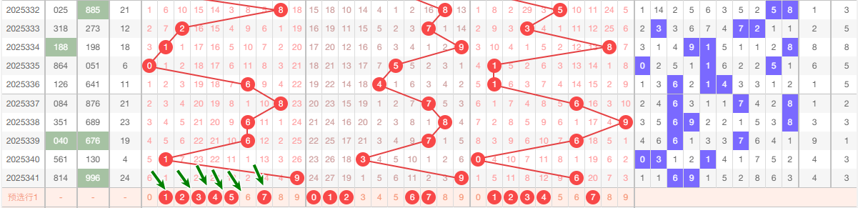 上期个位开出6,本区与上期的跨度为6,本期我们可以从上面走势图中看出选号的思路,本期 个位推荐关注:123457