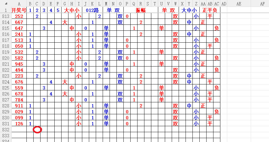 均值:就是开奖号每各数的总和除3,然后得到的余数,如果不够整除可以+1,-1,直到被整除得的数就是均值