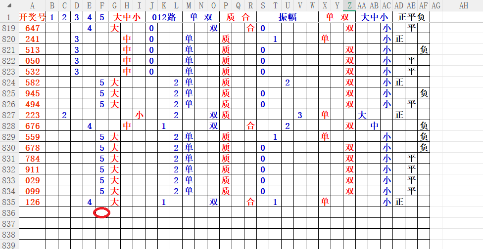 如上图56,大中小分析,中号3456出胆码,最低1个胆码,重点34