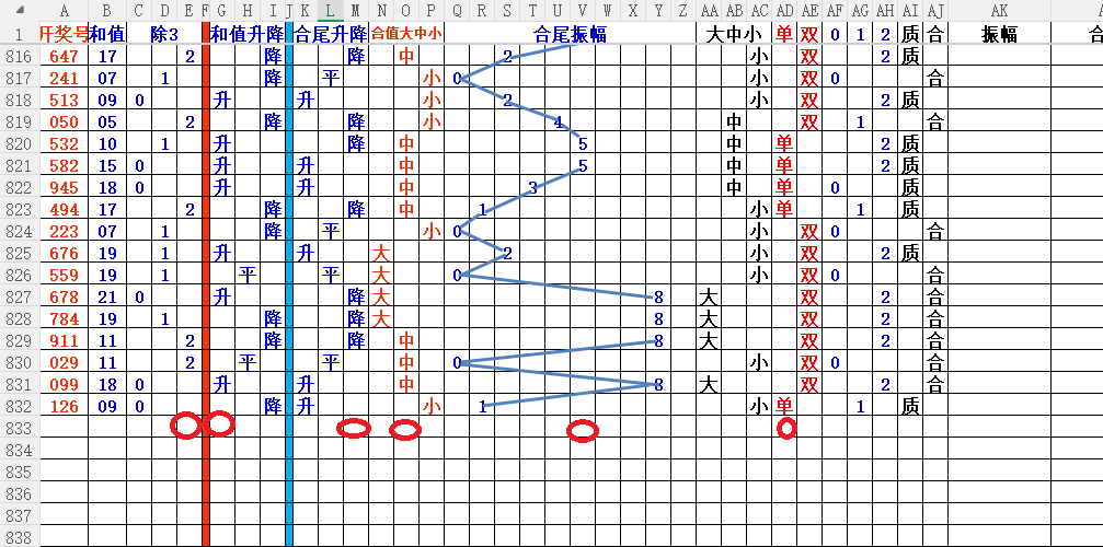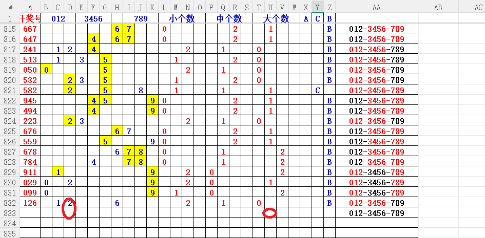 如上图2,012路分析,01路尾走比较好,关注0369147尾;