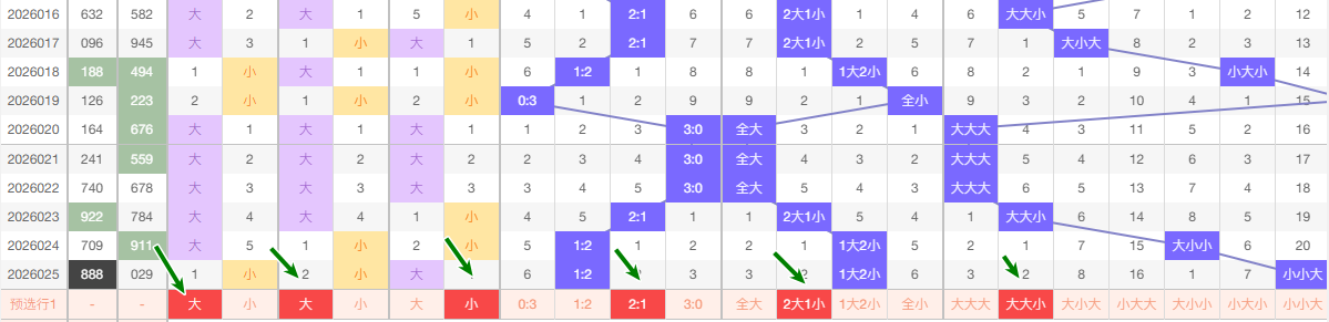 最近的5期当中十位大数出现的频次3次  小数出现2次 ,趋势平和 本期看好走小