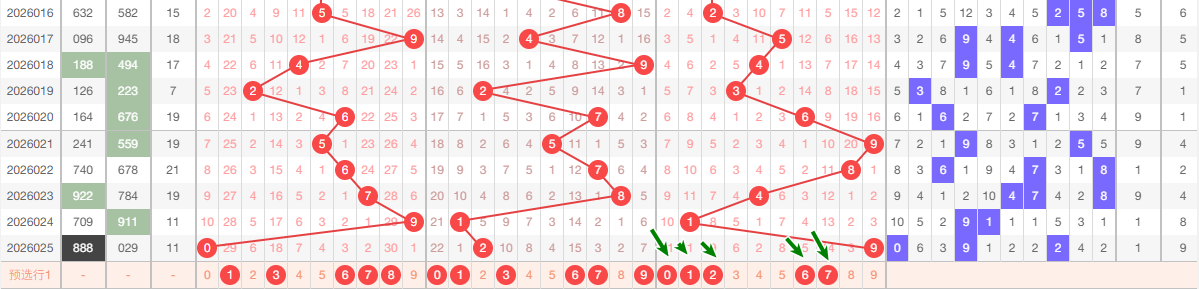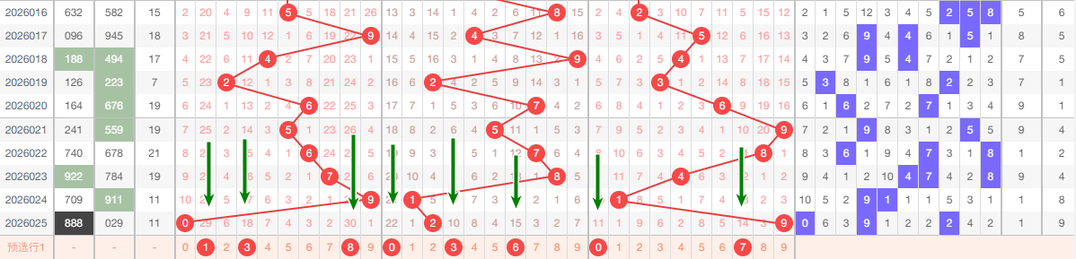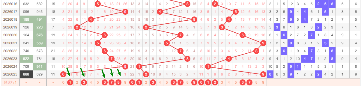 上期个位开出9,本区与上期的跨度为8,本期我们重点关注167,本期 个位推荐关注:012679