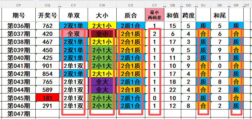 3,最近10天当中,两质一合开出4次,两合一质开出6次,全质数开出0次,全合数开出0次。当前开奖号全合号码遗漏20期,近期需重点关注开奖号全合号码的回补!