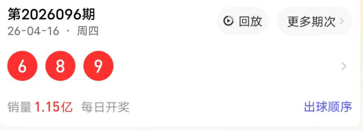 2026096期开奖号码为689,奇偶值为21奇;大小值为3大;012路走势为002路;跨度为3跨;和值23点;组六形态。