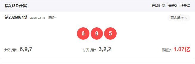 3D上期开奖回顾: