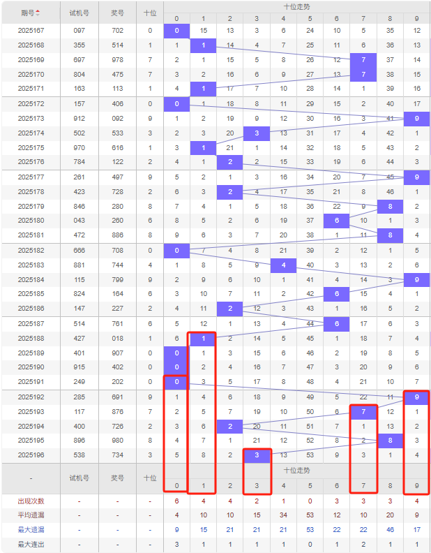 上期十位:3,近10期十位出号 :6 1 0 0 0 9 7 2 8 3。最近10期大小变化分别:大小小小小大大小大小,奇偶变化分别:偶奇偶偶偶奇奇偶偶奇,质合变化分别:合质合合合合质质合质,根据近10期的规律本期综上所述十位出号推荐5个号码:0 1 3 7 9。