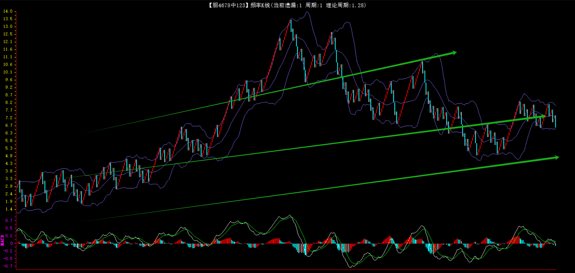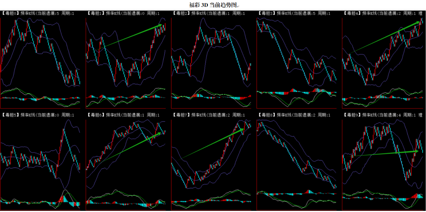 整体趋势上行,上边沿线趋势向上,下边沿趋势也是向上,节点震荡,当前遗漏1期,本期关注。