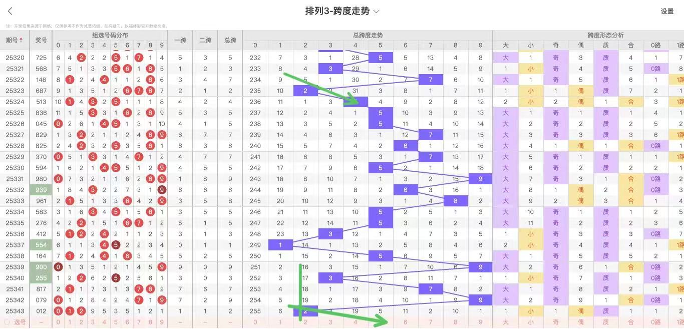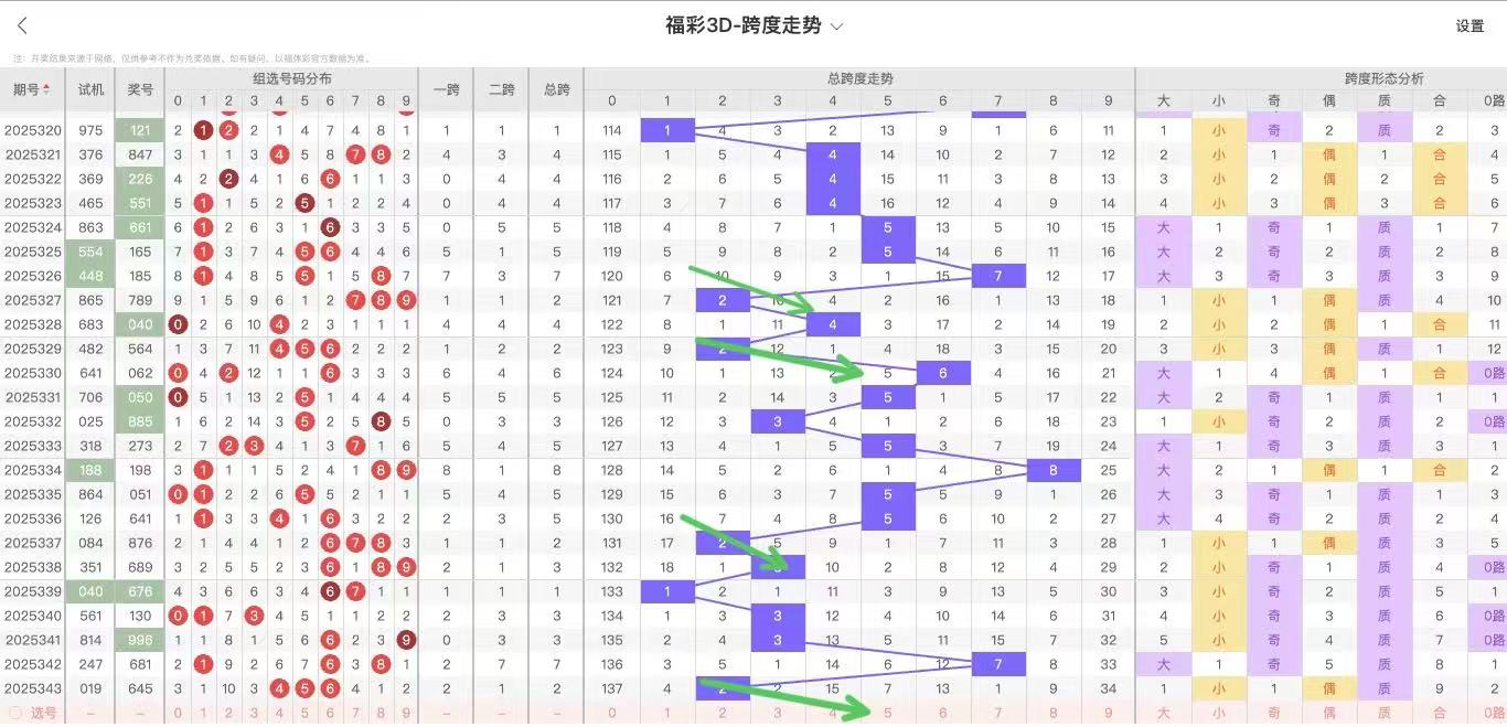 根据走势对跨度观察统计得到以下分析结果: