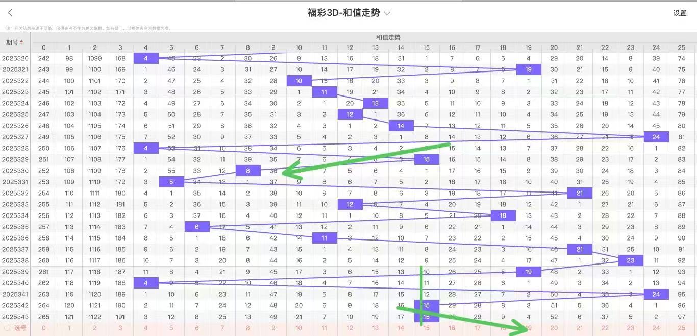 2025344期福彩3D和值走势图如下:
