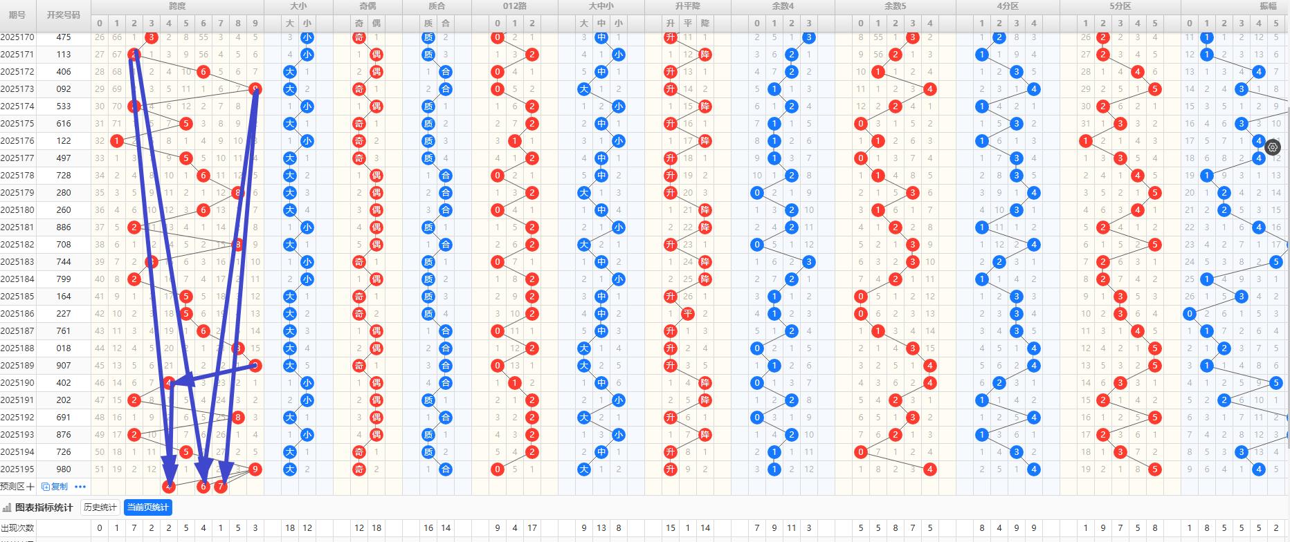 跨度预判 195期的跨度为9,这是一个相对较大的跨度值。在跨度走势的分析中,注意到跨度值常常在短期内呈现跳跃性变化,但长期内趋于稳定。近十期跨度比5-6-8-9-4-2-2-5-9在196期中,预判跨度值将在4到7之间波动,这样的预判既考虑了跨度的跳跃性,也体现了跨度的稳定性原则。