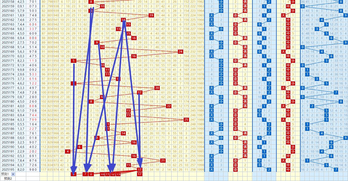 和值预判分析: 195期的和值为17,这是一个相对中等较大的和值。在和值走势的分析中,注重和值的波动性和稳定性。考虑到近期和值的波动范围,可以预判196期的和值将走小。这样的预判不仅符合和值的波动性规律,也体现了和值的稳定性原则。和值预判为19、重点关注.遗漏