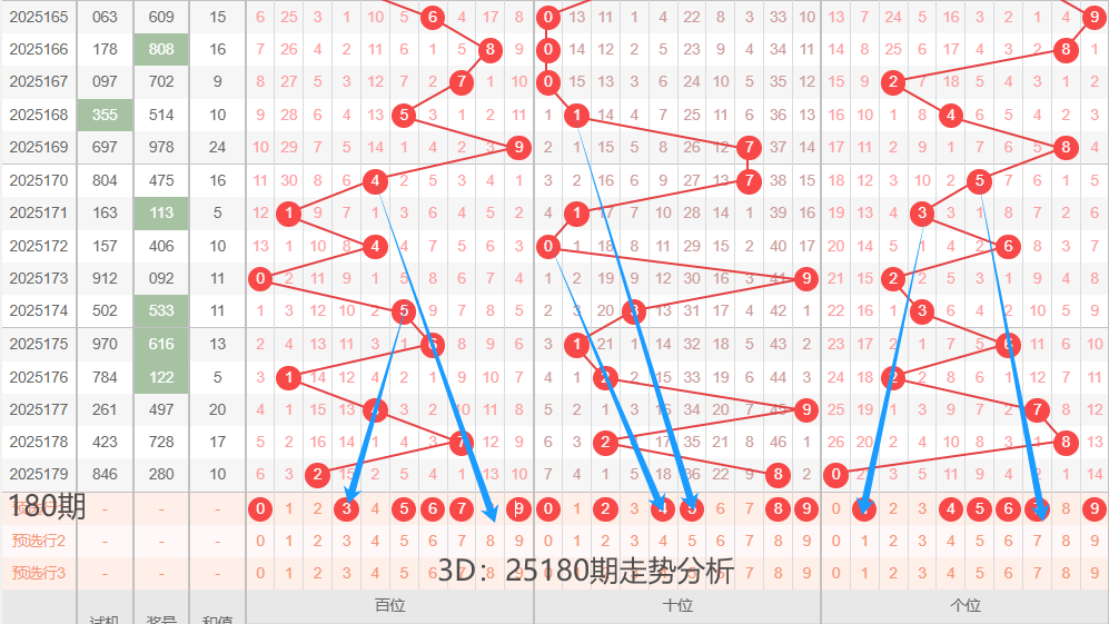 通过以上简单分析,我们看下25180期号码的定位分析: