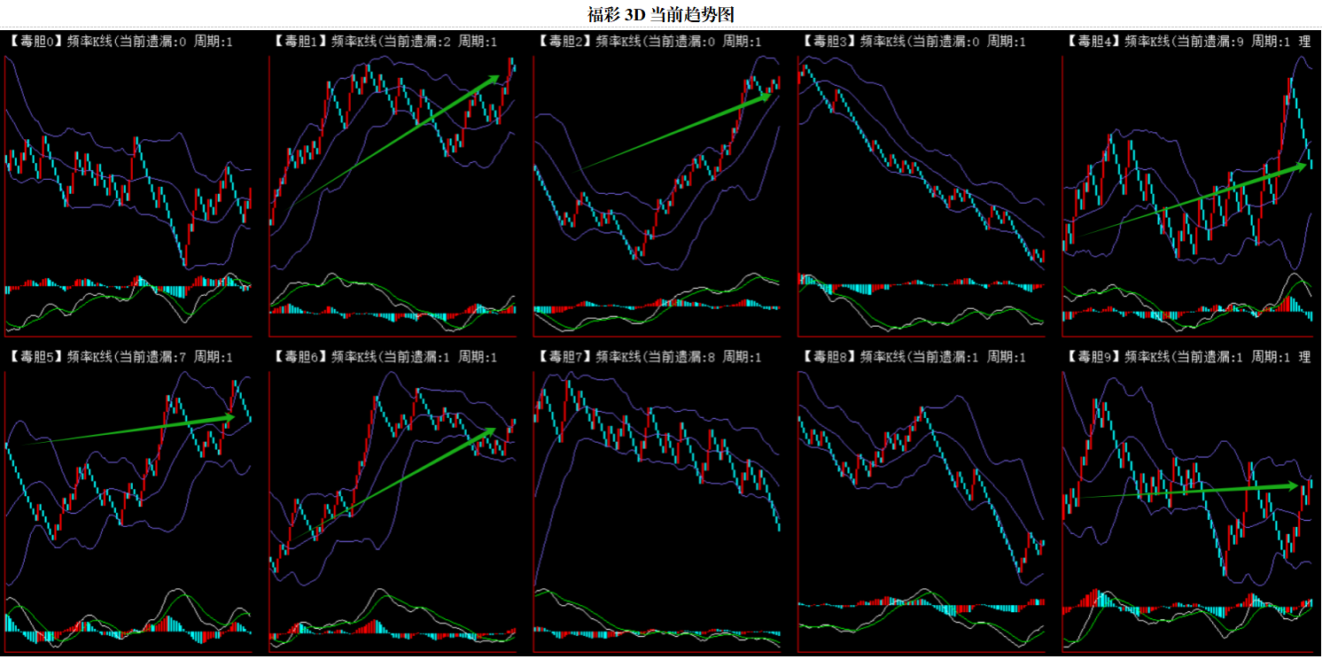 整体趋势上行,上边沿线趋势向上,下边沿趋势也是向上,节点震荡,当前连开2期,本期关注。