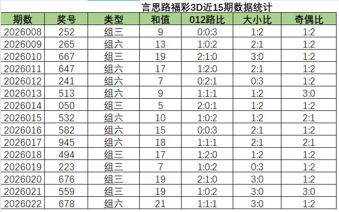 言思路福彩3D第2026023期,上期5码复式均命中678