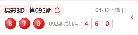 福彩3D第092期开奖结果为:870