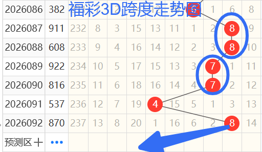 依次是87748跨度,按照路数转换关系来看,那么跨度我们暂定147369跨 ,本期个人比较看好3 跨。