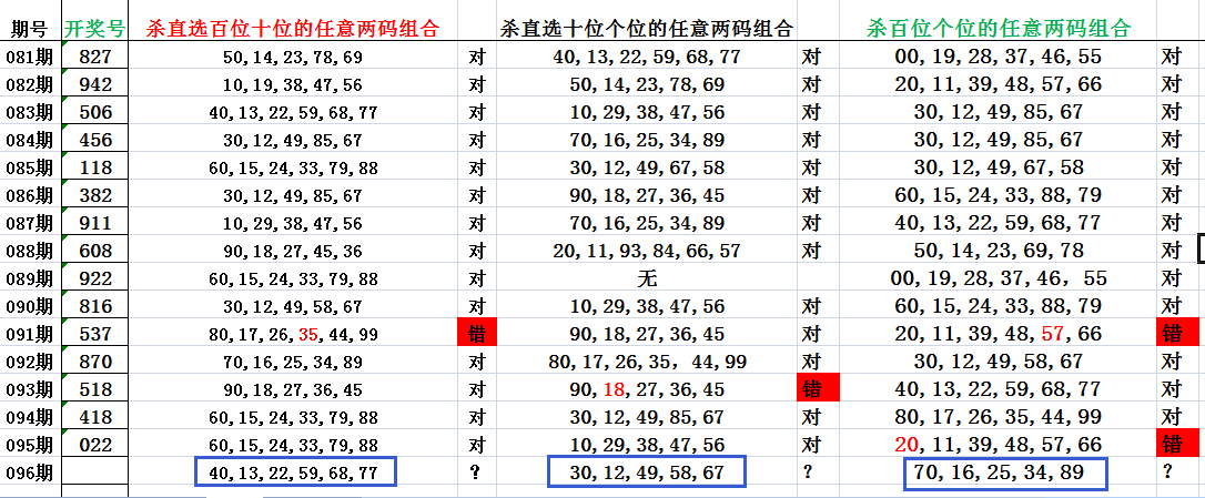 杀直选定位两码组合,上期第三组错误