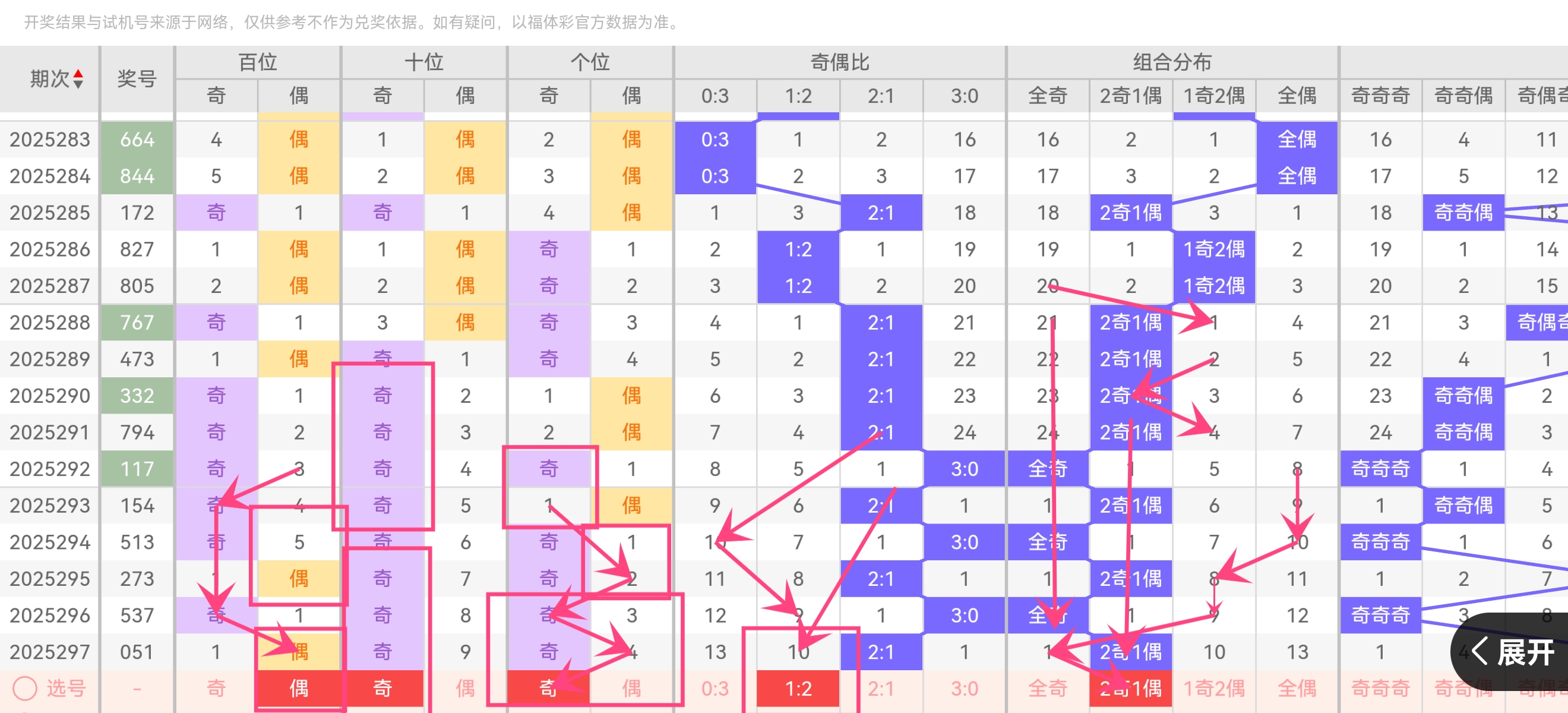 295期:3:0 → 296期:2:1 → 297期:1:2(051:质数5,合数0、1)