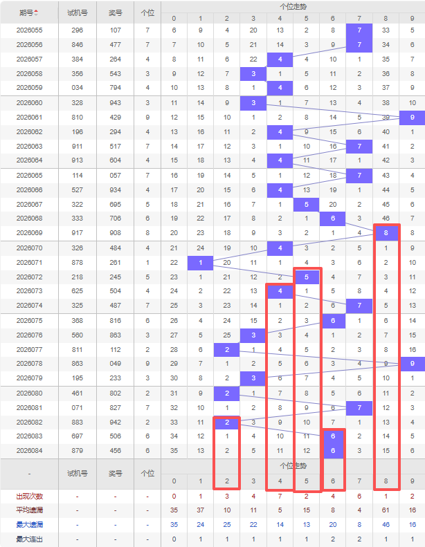 上期个位:6,近10期个位出号:6 3 2 9 3 2 7 2 6 6。最近10期大小变化分别:大小小大小小大小大大,奇偶变化分别:偶奇偶奇奇偶奇偶偶偶,质合变化分别:合质质合质质质质合合,根据近10期规律本期综上所述个位出号推荐5个号码:2 4 5 6 8。