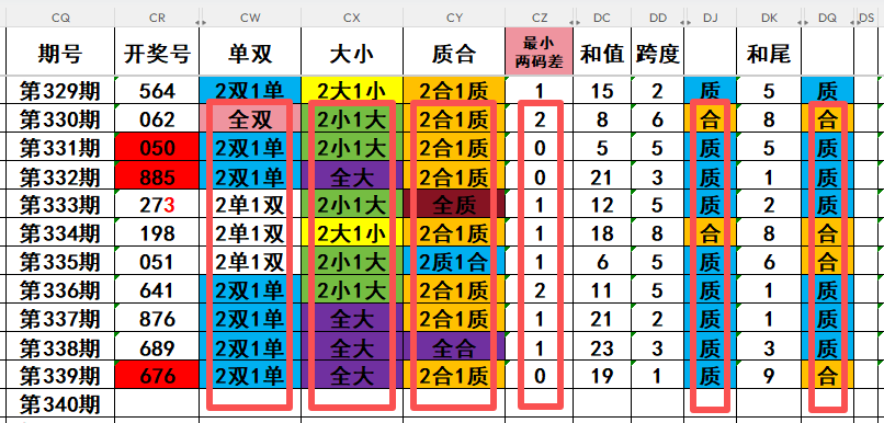3,最近10天当中,两质一合开出1次,两合一质开出7次,全质数开出1次,全合数开出1次。近期需重点关注开奖号码两质一合的回补!