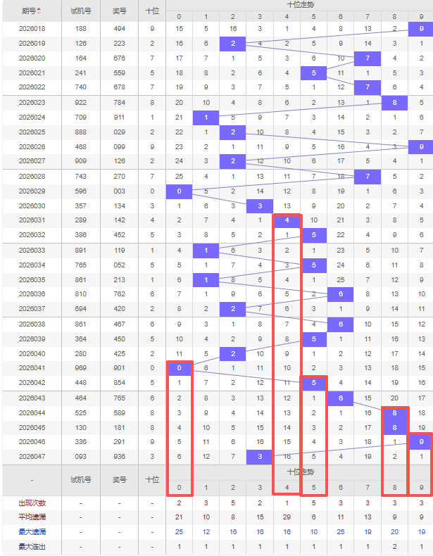 上期十位:3,近10期十位出号 :6 5 2 0 5 6 8 8 9 3,最近10期大小变化分别:大大小小大大大大大小,奇偶变化分别:偶奇偶偶奇偶偶偶奇奇,质合变化分别:合质质合质合合合合质,根据近10期的规律本期综上所述十位出号推荐5个号码:0 4 5 8 9。