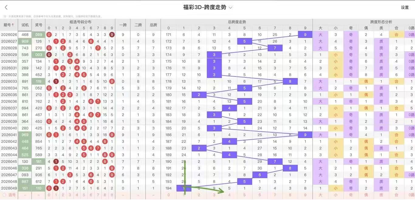 根据走势对跨度观察统计得到以下分析结果: