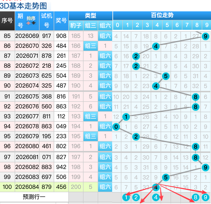 3D上期百位开出4球,这个奖号4是一个顺位号码的回补落位趋势也是一个比较好的符合百位上的落位点,先8号球这里还是有机会继续走出一个大号码热回补趋势还是要注意防守的,还有一个就是1号球这里的是冷码间隔7期的落位形态在这里的机会还是很好的要注意防守,然后9号球这里要注意是一个5跨回补落位趋势注意防守4号球2号球在百位上要注意可能有机会走出重码和号2跨回补的概率 。