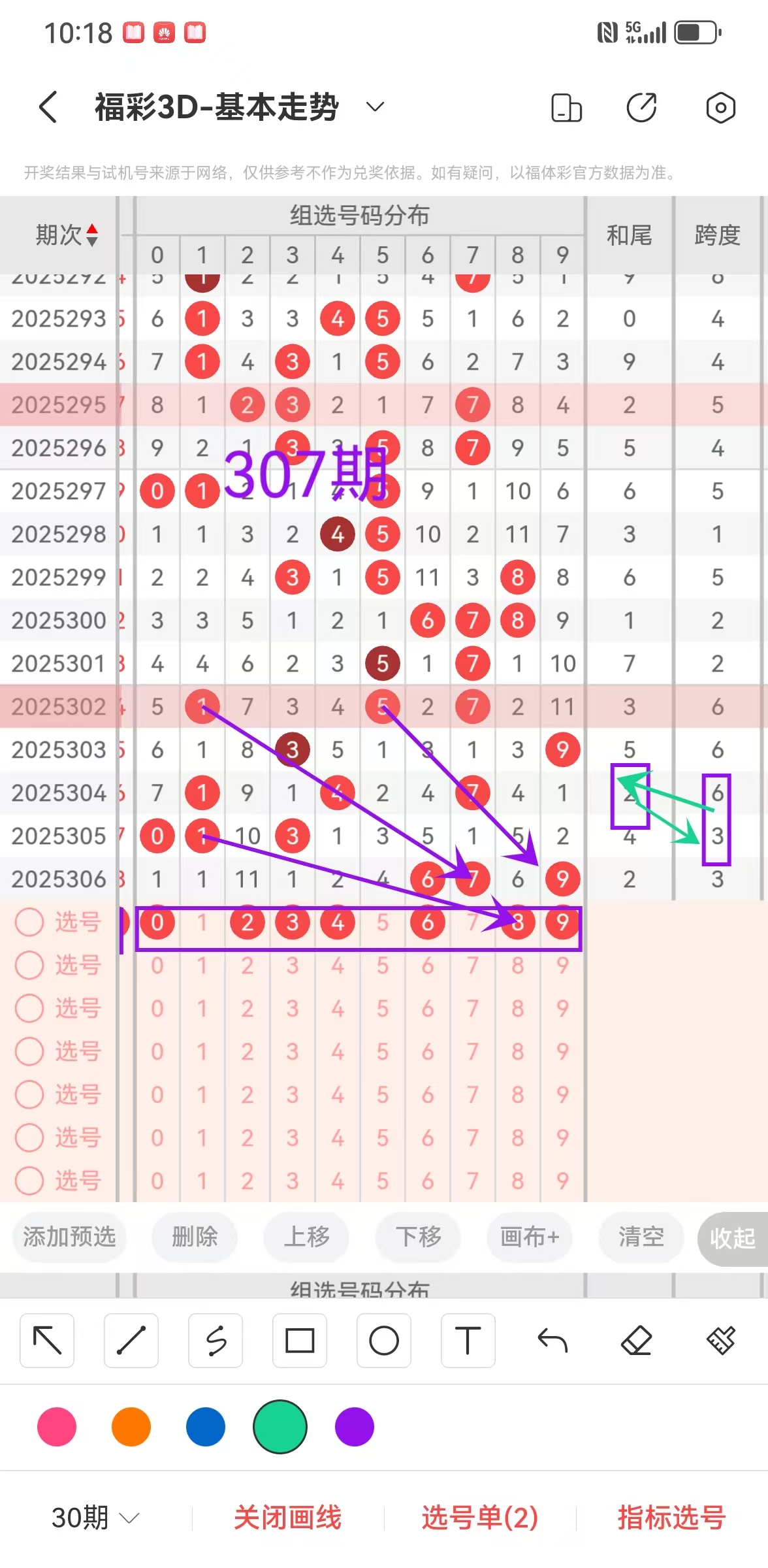 二、福彩3D第307期组选分布,和尾,跨度分析,(五行八卦数字推演法)如下图: