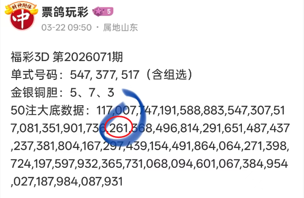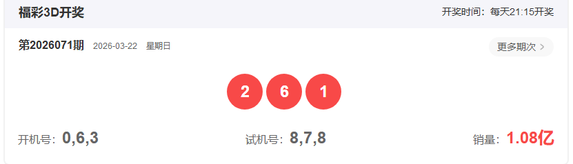 福彩3D第2026072期分析,上期大底命中直选261,且看本期思路!