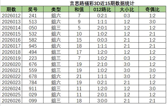 言思路福彩3D第2026027期,实用选号思路和方案分享