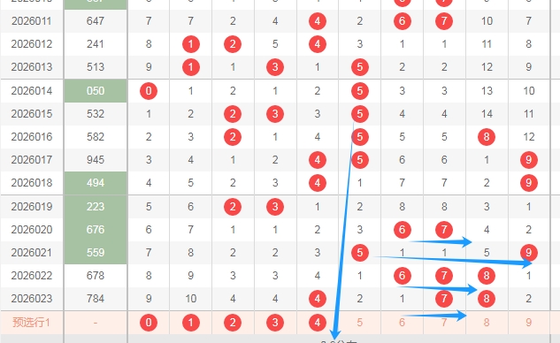 上图是福彩3D开奖号码分布走势图,我在上面走势图中标注出来的数字是01234,你们看这个区域的数字最近十几期开出的号码并不是很大,最近连续四期开奖号码出现的蓝色箭头的右边区域居多。上期开出的号码478,是两个蓝色箭头右边的数字一个蓝色箭头的左边数字,本期看好蓝色箭头的左边数字01234出2个或者3个。至少出1个。