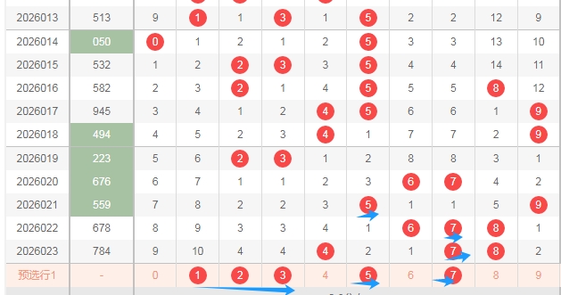 上图是福彩3D开奖号码分布走势图,我在上面走势图中标注出来的数字是质数12357,你们看上面走势图中标注出来的蓝色小箭头就知道,最近开出的质数数字不多,那么本期个人观点就是质数数字12357至少要关注出一个吧。