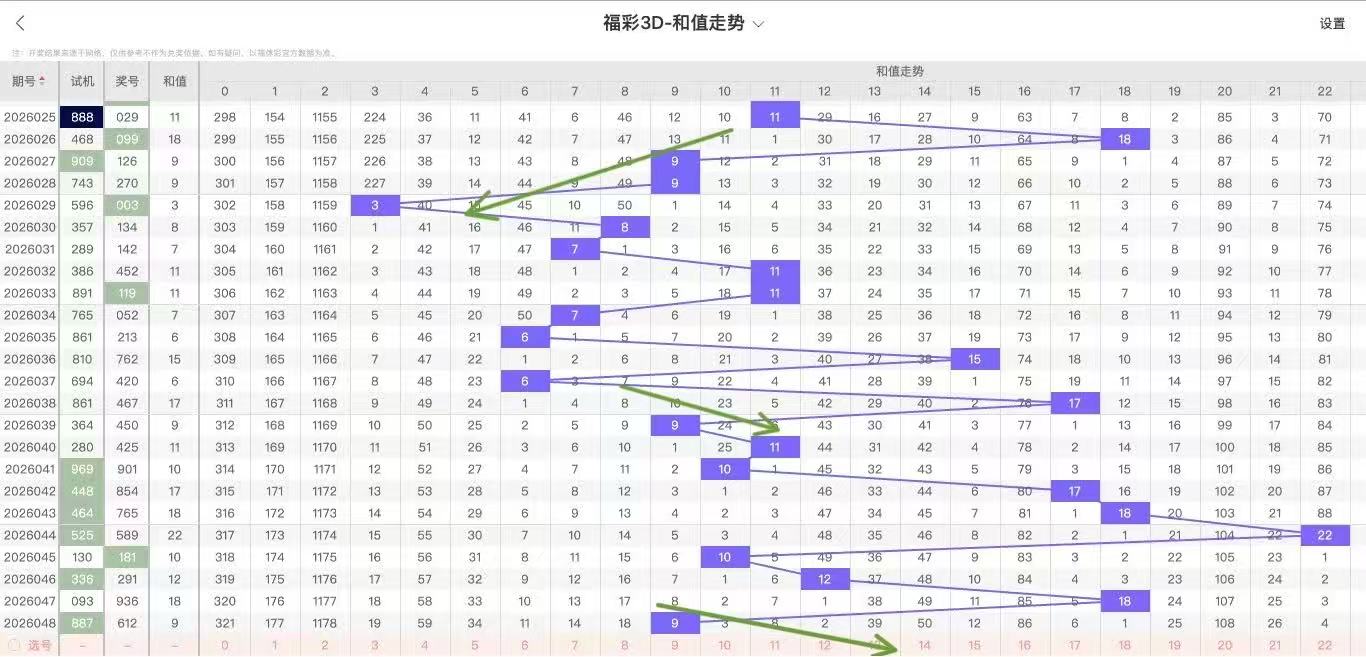 2026049期福彩3D和值走势图如下: