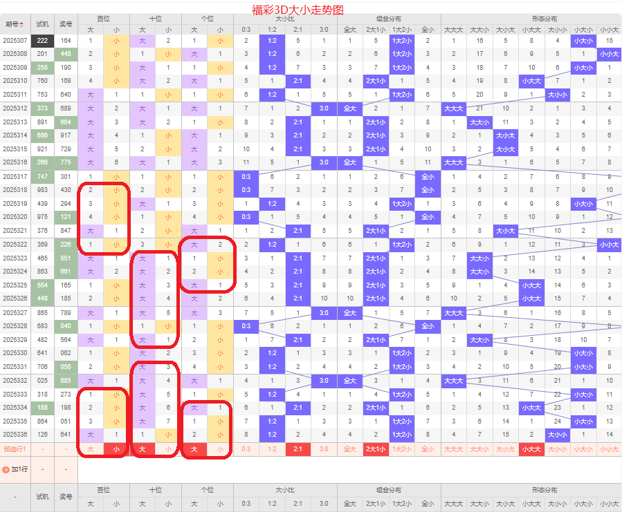 十位近期号码基本在4到9的区域,侧重大号码,侧重奇数的号码,侧重0路和2路的号码,侧重号码03689。