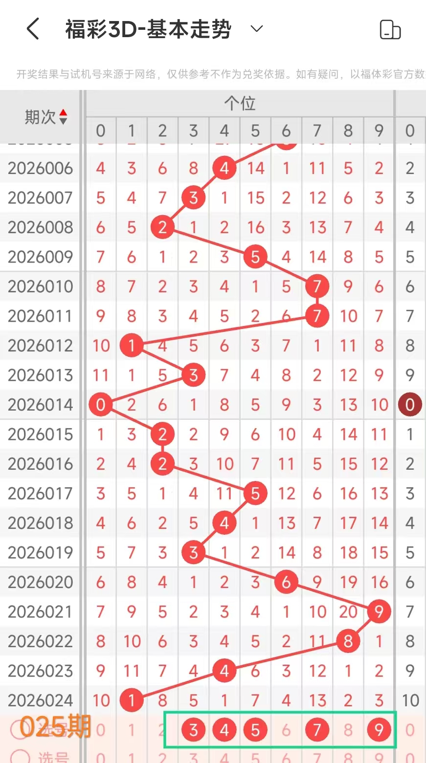 4、通过上述我们得到这期百十个位分析号码:百位4,十位5679、个位01579