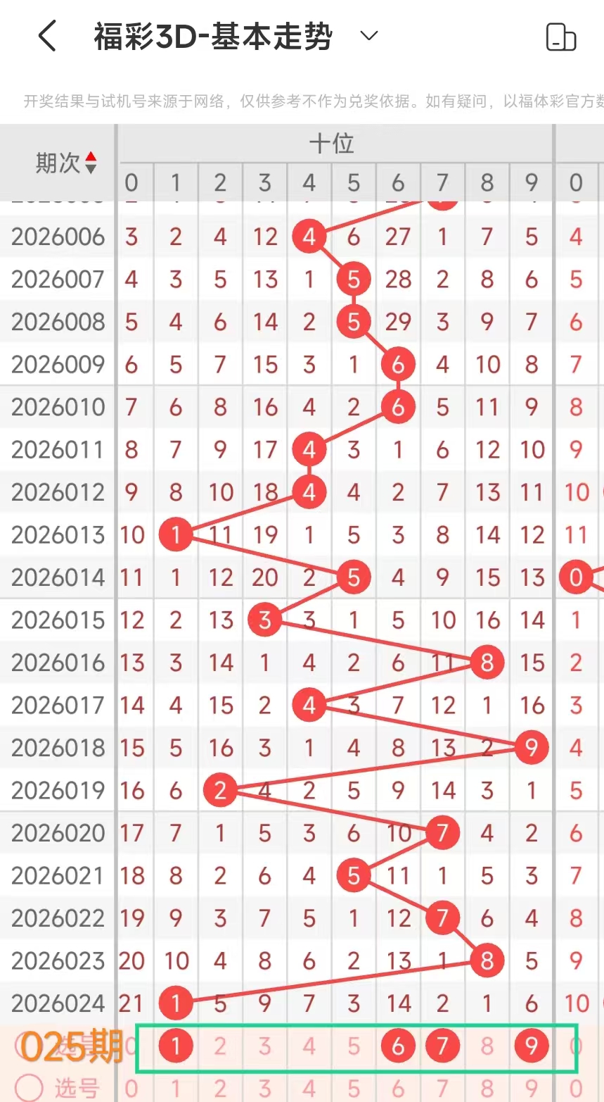 2、当十位开出1后下期开出:6965739275,经统计0号出0次、1号出现0次、2号出现1次、3号出现1次、4号出现0次、5号出2次、6号出现2次、7号出现2次、8号出现0次、9号出现2次。观察发现5679号出现频繁,本期可以考虑。