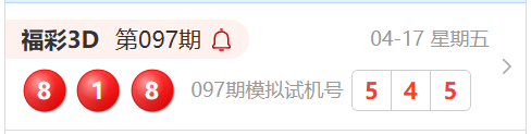 福彩3D第097期开奖结果为:818
