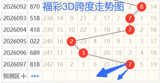 依次是77237跨度,按照路数转换关系来看,那么跨度我们暂定147369跨 ,本期个人比较看好4 6跨。