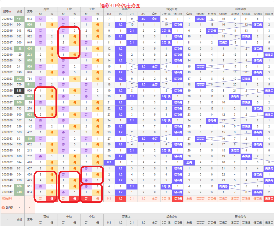 上期奇偶比是1:2,两偶的号码组合方式,从近五期的奇偶数出现情况看,奇数出现6次,偶数出现9次,奇数号码出现较少,本期侧重两偶的号码组合,侧重偶偶奇或偶奇奇的号码组合方式,根据奇偶形态做五码定位02468/02468/13579或02468/13579/13579