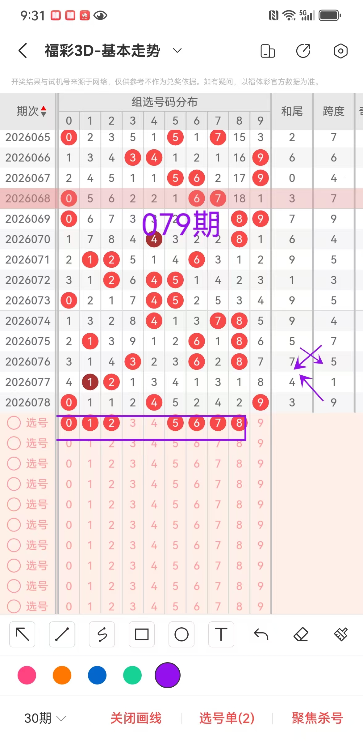 二、福彩3D2026第079期组选,尾,跨度,分析: