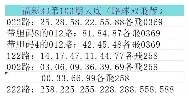 4.最后,根据近期路球形态的走向,本期路球的走向最有可能的是220路.210路.020路.122路和222路。