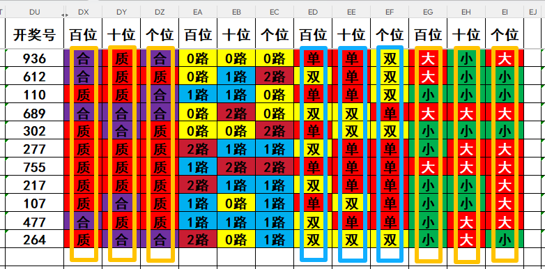 3,目前开奖号个位号码球11天当中,质数(12357)开出了7次,合数(04689)开出了4次,本期重点关注开奖号个位号码球合数的回补!