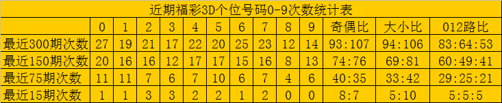 个位分析:最近300期奖号由冷到热表现为:3→25次,9→26次,8→27次,1、2→28次,4→29次,6、7→33次,5→35次,0→36次,该位号码奇偶比为147:153,大小比为154:146,012路比为120:90:90。