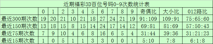 最近150期奖号由冷到热表现为:3→8次,9→12次,0→13次,5、8→14次,2、4→15次,7→17次,1→18次,6→24次,奖号奇偶比为69:81,大小比为81:69,012路比为57:50:43。